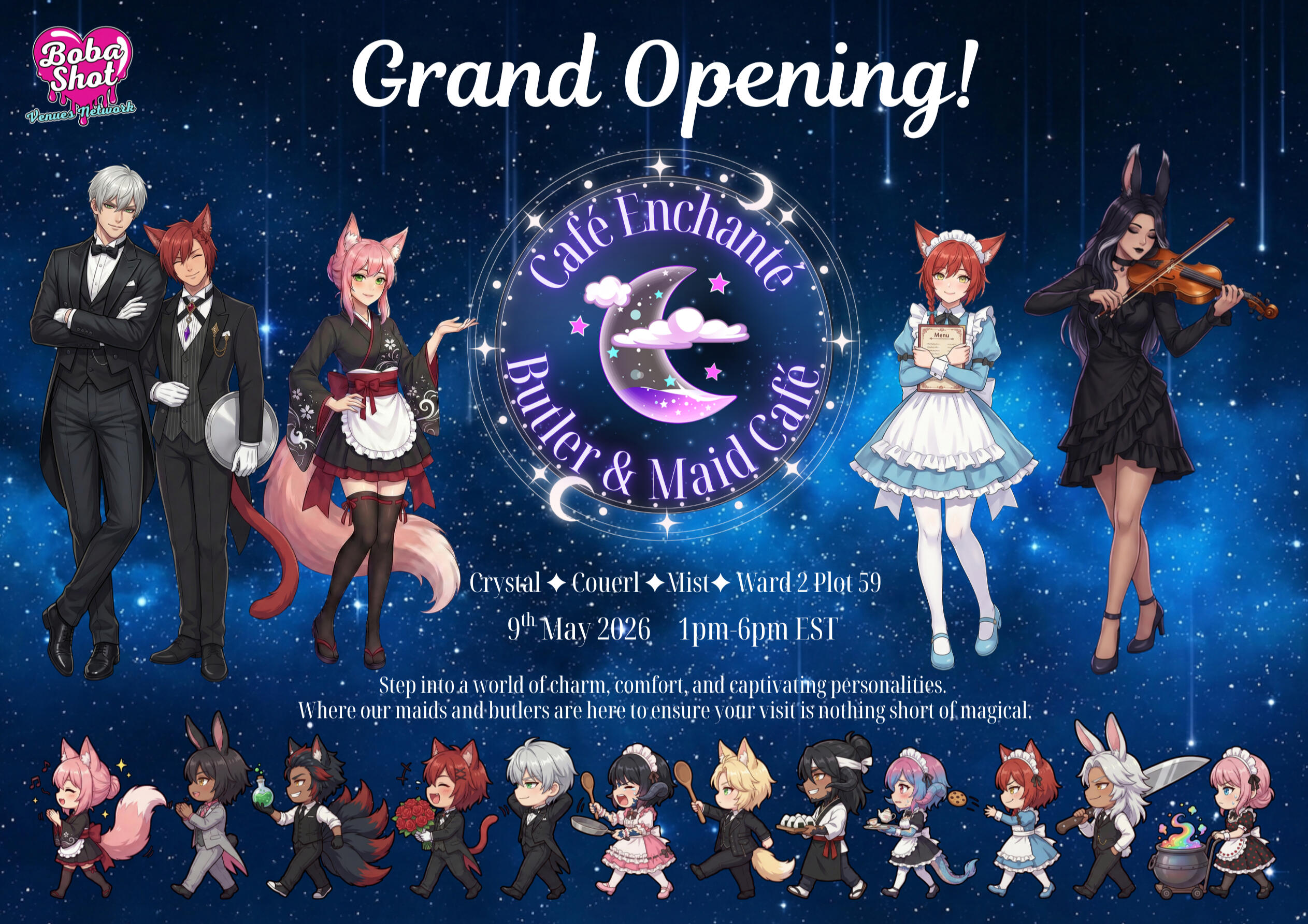 🕊️Includes benefits from previous tier with the following upgraded perks👑A Special VIP Lifetime Discord Role ‘Celestial Bloom’📷1 exclusive group VIP gpose and 2 solo gposes a month (allowance of up to four friends in the group gpose)🎰One entry into the raffle or gamba death roll at each venue once a month🎆Use of one of any of our venues at a 50% discounted rate once per year outside of operating hours (Must be booked 1 month in advance and subject to availability)🍾Priority booking privileges for all venues outside of operating hours💫Two Tarot Readings per Month (Café Enchanté Only)🎲Boba Shot Lounge Only - Higher bets on gambling (2 Million more max than general customers)